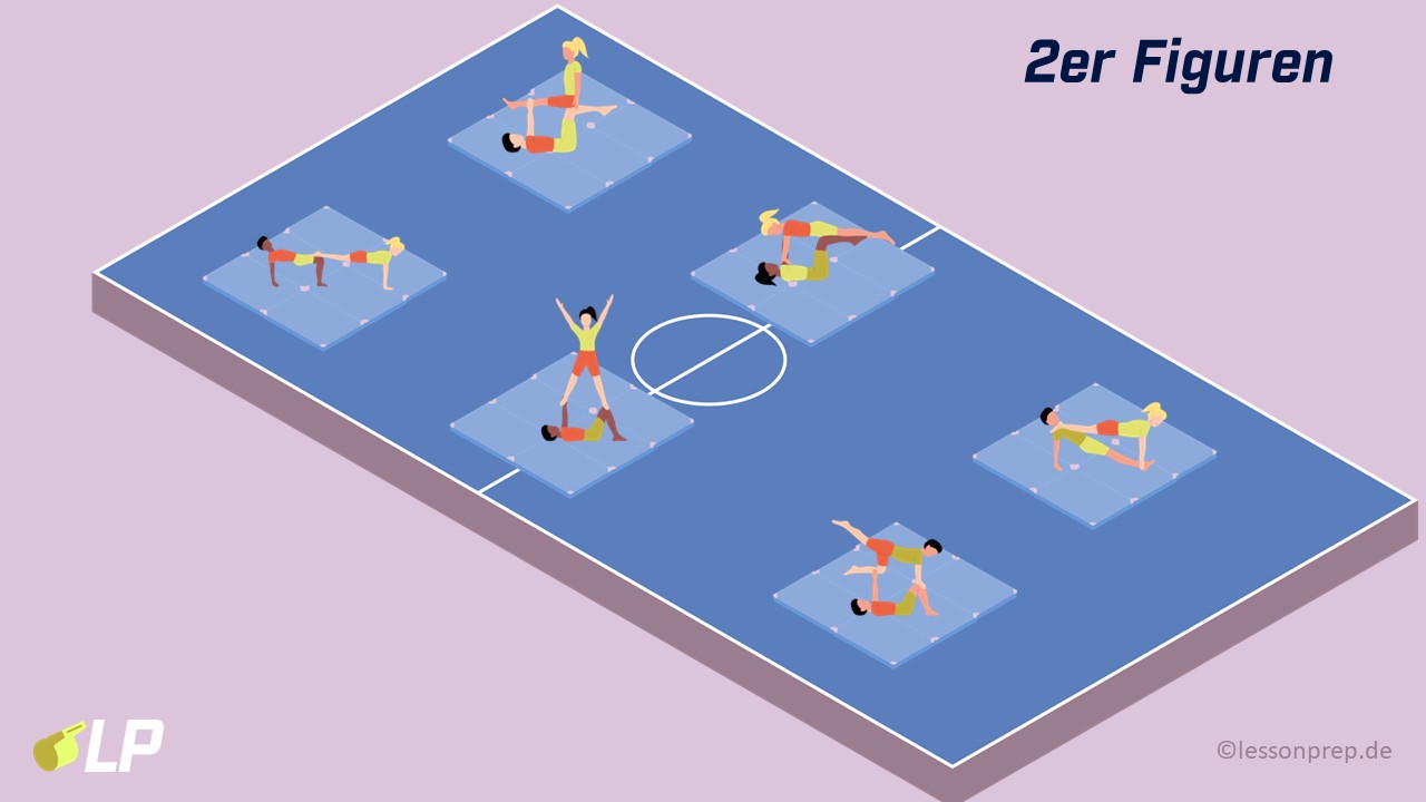 An dieser Stelle werden die notwendigen Unterrichtmaterialien als Kopiervorlagen (pdf) hochgeladen. Wir stelle dir direkt alle Akrobatikfiguren zur Verfügung, empfehlen jedoch, den SuS zunächst nur die 2er-Figuren auszuhändigen, damit sie nicht zu früh und unerlaubt größere Figuren ausprobieren. Wenn du im Unterricht mit digitalen Endgeräten arbeitest, empfehlen wir dir unser digitales Materialpaket.