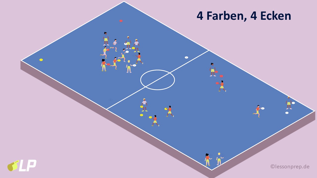 - Auf Pfiff schnell orientieren und zu entsprechender Farbe laufen.