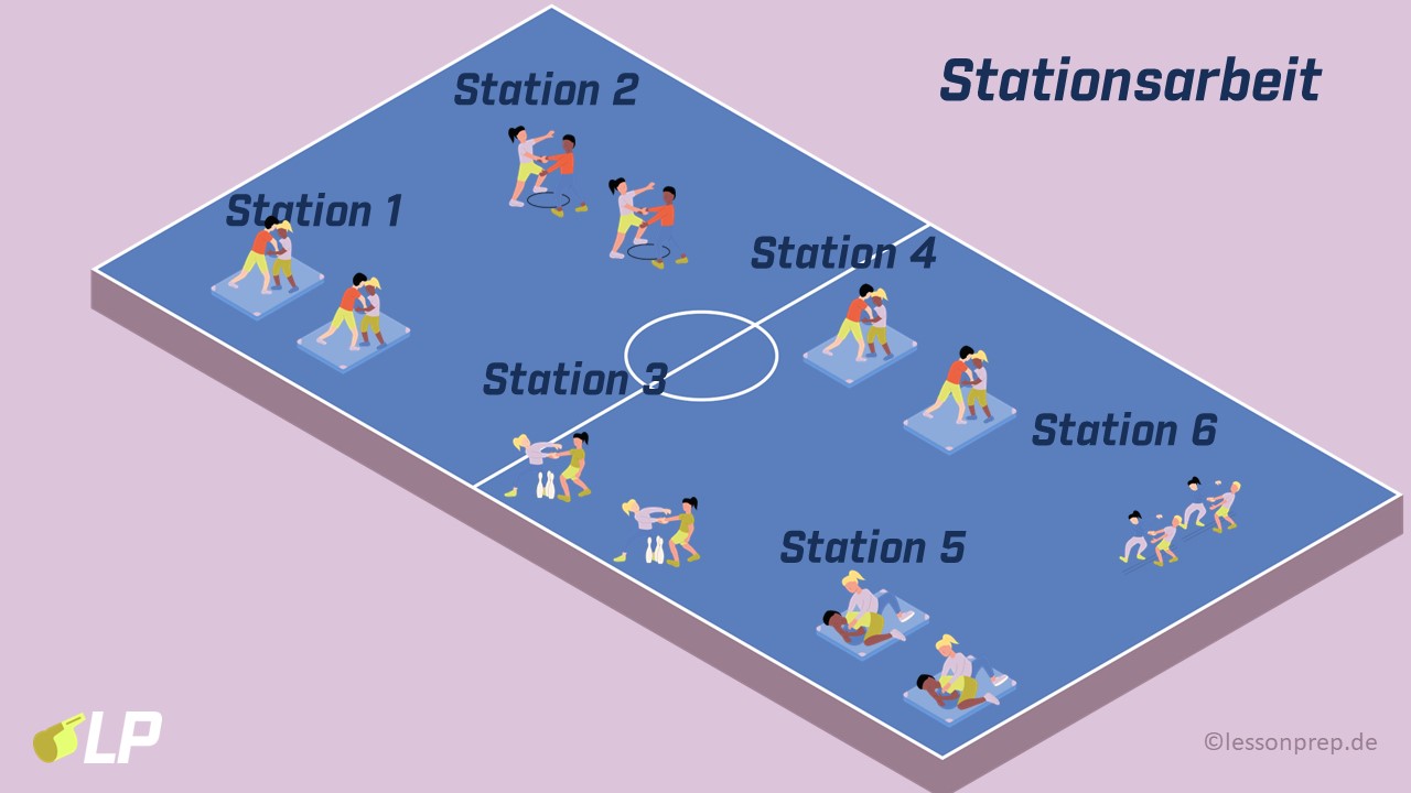- Möglichkeit: Die Stationsarbeit könnte erneut mit anderen 3er Teams durchlaufen, oder ggf. ein Abschlussspiel gespielt werden.
