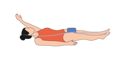 • Mit Pullbuoys zwischen den Beinen in Rückenlage auf die andere Seite schwimmen und das Pullbuoy übergeben.