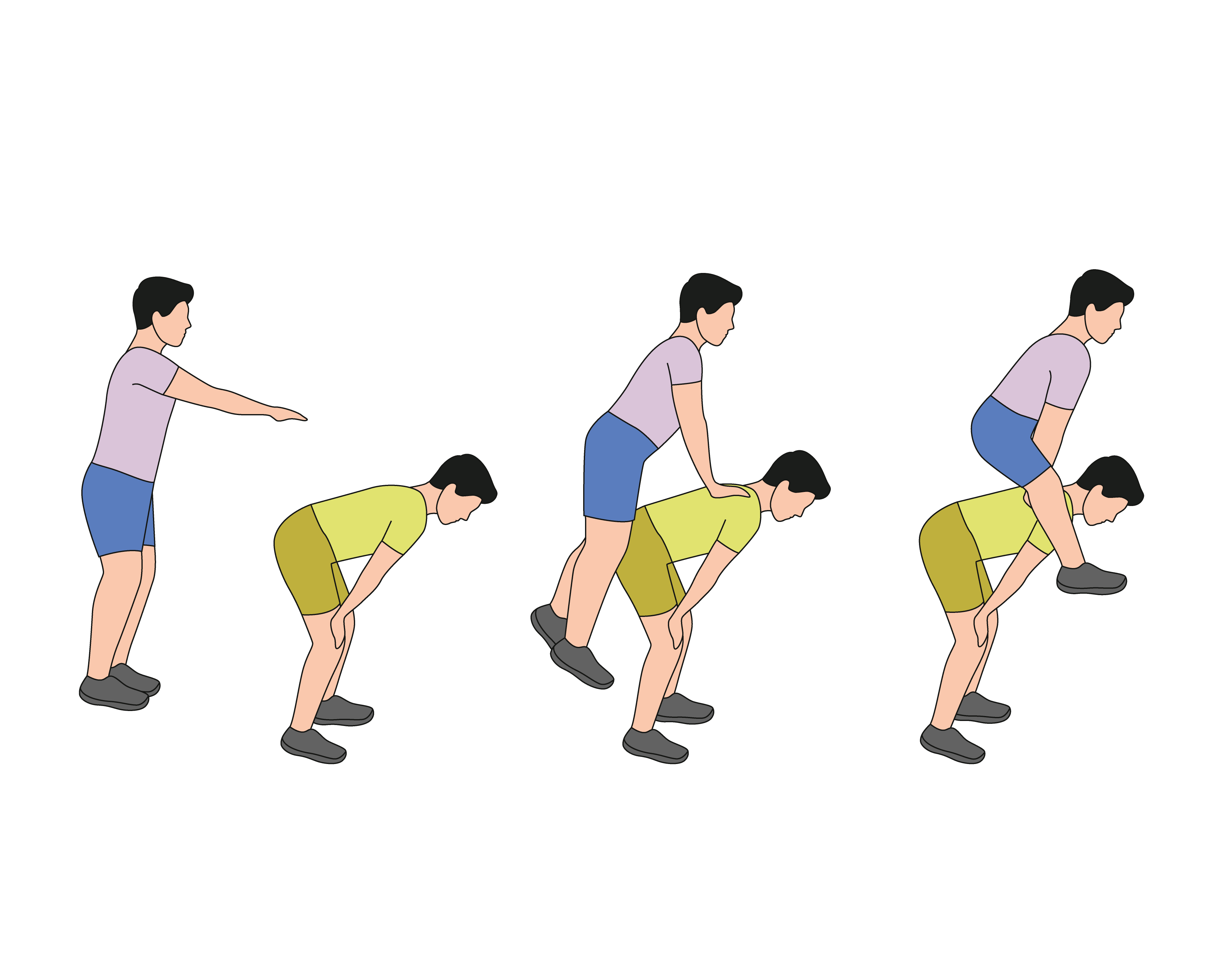 • Man kann befreit werden, indem ein Mitschüler einen Grätschsprung über einen macht (siehe Grafik).